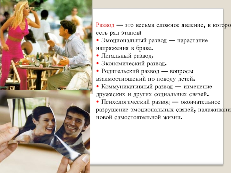 Слайд 30Развод — это весьма сложное явление, в котором есть ряд этапов: