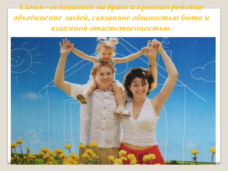 Слайд 8Семья - основанное на браке и кровном родстве объединение людей, связанное
