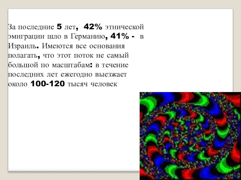 Слайд 37За последние 5 лет, 42% этнической эмиграции шло в Германию, 41%