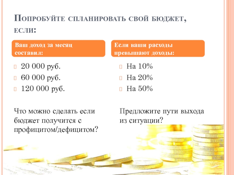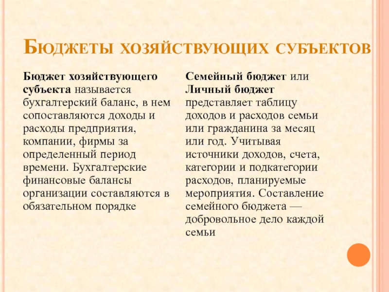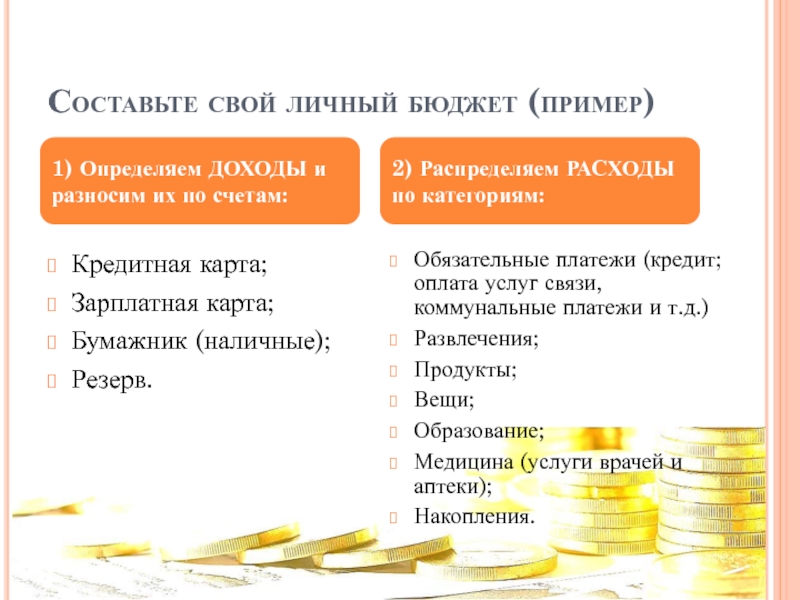 Семейный бюджет или Личный бюджет представляет таблицу доходов и расходов семьи или гражданина за месяц или год. Учитывая источники доходов, счета, категории и подкатегории расходов, планируемые мероприятия. Составление семейного бюджета — добровольное дело каждой семьи