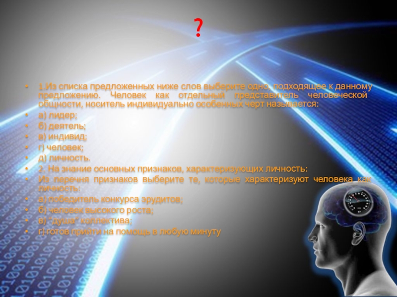 Из перечня признаков выберите те, которые характеризуют человека как личность: