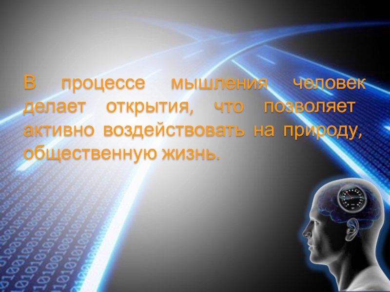 Слайд 39В процессе мышления человек делает открытия, что позволяет активно воздействовать на