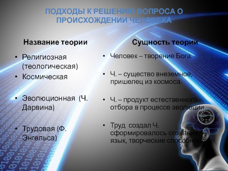 Слайд 5Подходы к решению вопроса о происхождении человека