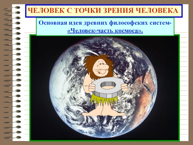ЧЕЛОВЕК С ТОЧКИ ЗРЕНИЯ ЧЕЛОВЕКАОсновная идея древних философских систем-«Человек-часть космоса».