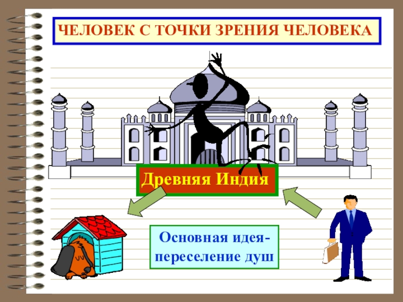 ЧЕЛОВЕК С ТОЧКИ ЗРЕНИЯ ЧЕЛОВЕКАДревняя ИндияОсновная идея-переселение душ