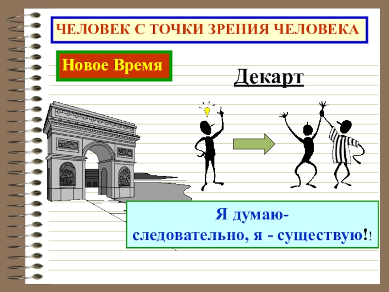 ЧЕЛОВЕК С ТОЧКИ ЗРЕНИЯ ЧЕЛОВЕКАНовое ВремяДекартЯ думаю-следовательно, я - существую!!
