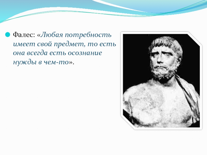 Фалес: «Любая потребность имеет свой предмет, то есть она всегда есть