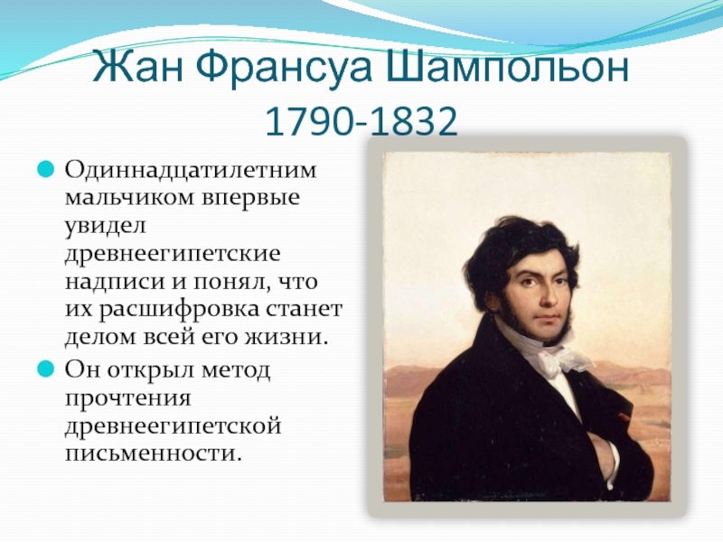 Он открыл метод прочтения древнеегипетской письменности.