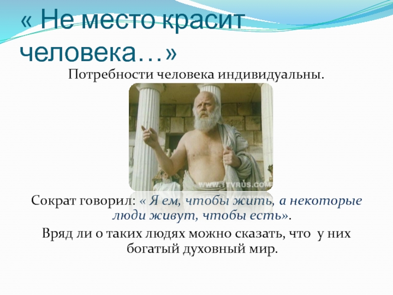 Слайд 9« Не место красит человека…»