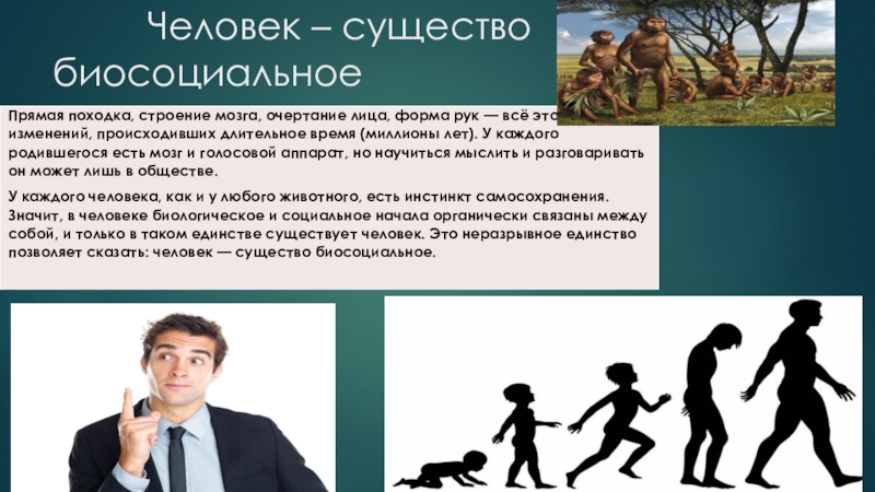 Человек — биосоциальное существо, представляющее собой особое звено в развитии живых организмов на Земле.
