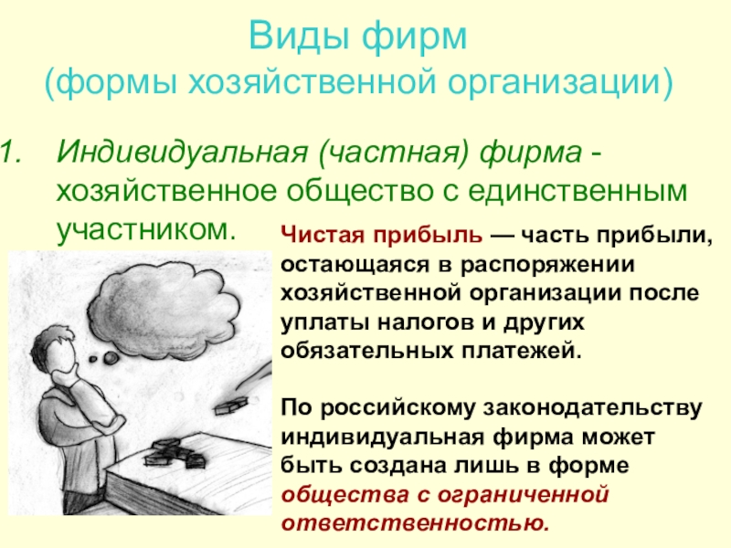 По российскому законодательству индивидуальная фирма может быть создана лишь в форме общества с ограниченной ответственностью.