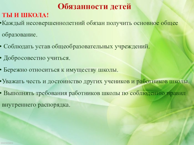 Каждый несовершеннолетний обязан получить основное общее образование.