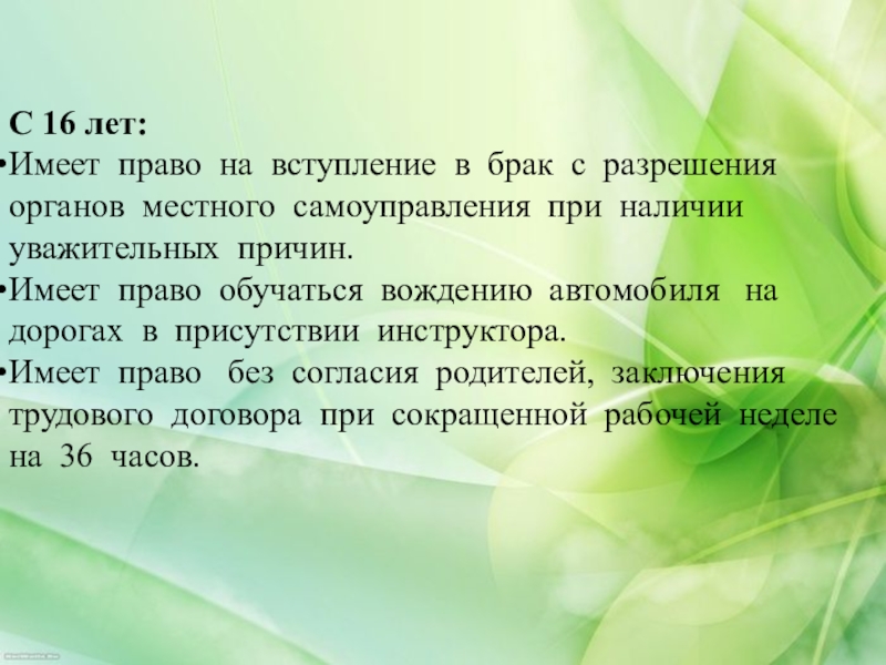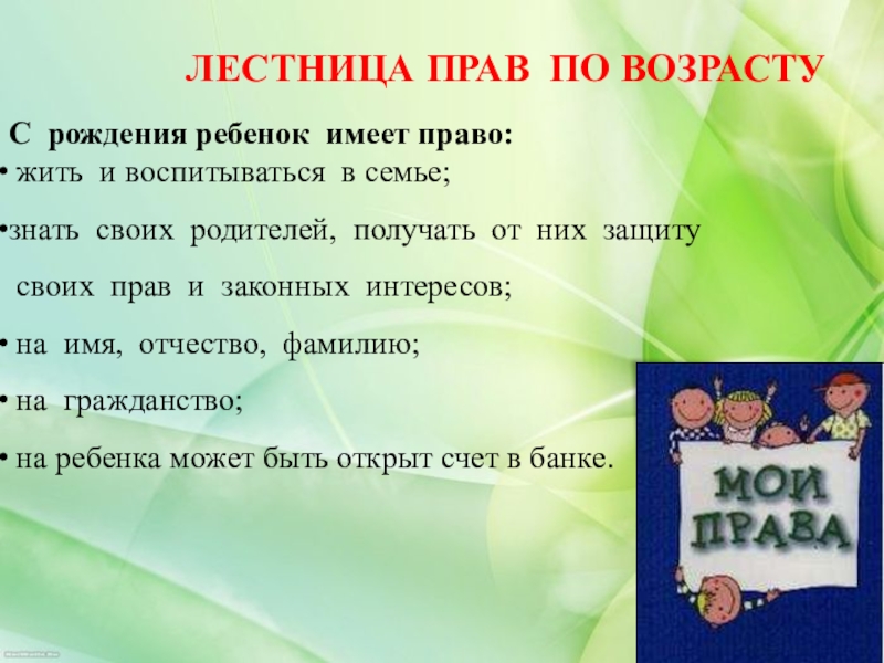 ЛЕСТНИЦА ПРАВ ПО ВОЗРАСТУ