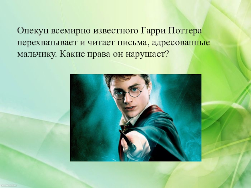 Слайд 24Опекун всемирно известного Гарри Поттера перехватывает и читает письма, адресованные мальчику.
