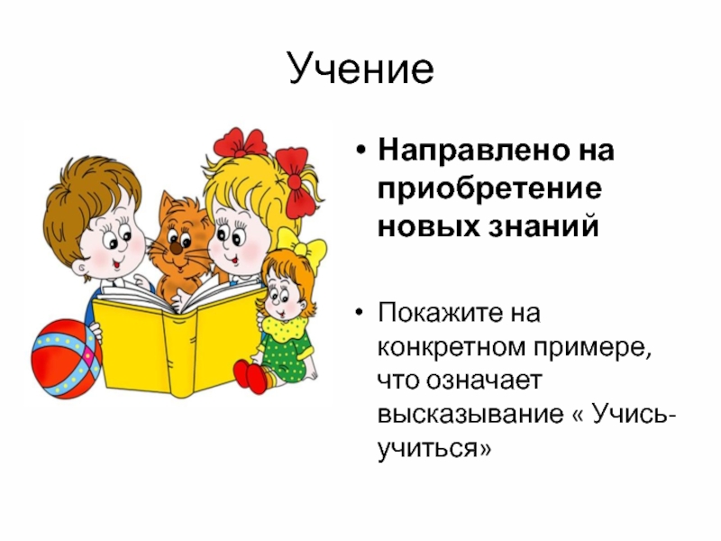 УчениеНаправлено на приобретение новых знанийПокажите на конкретном примере, что означает высказывание « Учись- учиться»