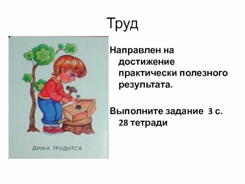 Труд Направлен на достижение практически полезного результата.Выполните задание 3 с. 28 тетради