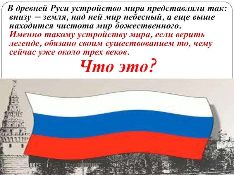 В древней Руси устройство мира представляли так: внизу – земля, над ней мир небесный, а еще