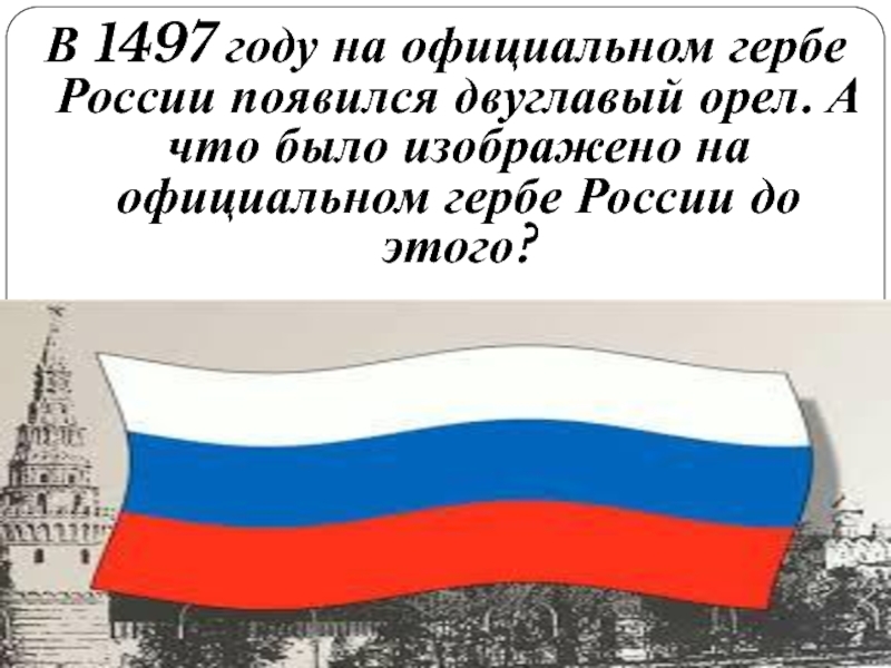 Слайд 10В 1497 году на официальном гербе России появился двуглавый орел. А