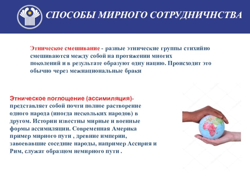 одного народа (иногда нескольких народов) в другом. Истории известны мирные и военные формы ассимиляции. Современная Америка пример мирного пути , древние империи,