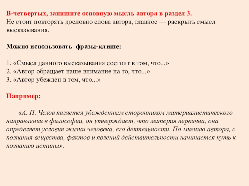 Слайд 10В-третьих, следует выбрать одно из шести предложенных высказываний.