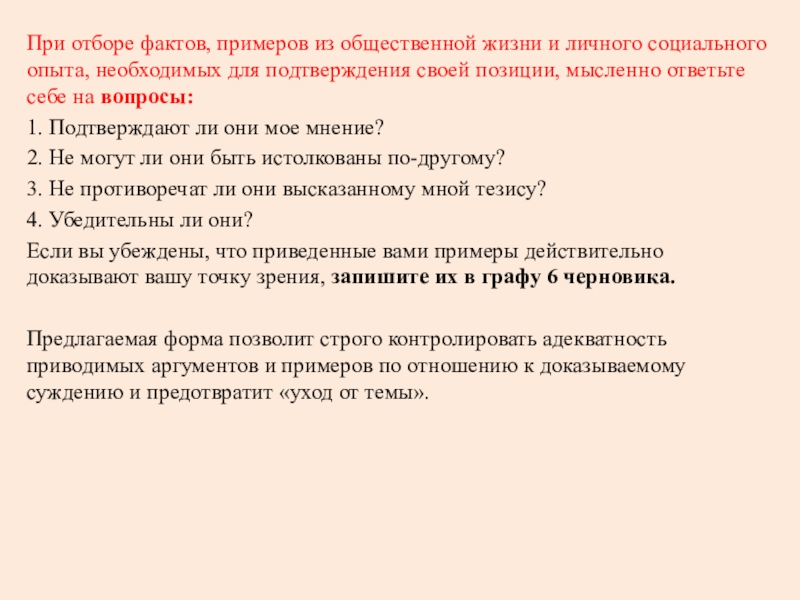 подкрепление приведенных теоретических положений осмысленными фактами общественной жизни, социального поведения, личного опыта;