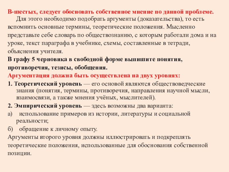 2. Неумение сформулировать проблему (тему) часто связано с отсутствием развитого словарного и терминологического запаса по базовым обществоведческим наукам.