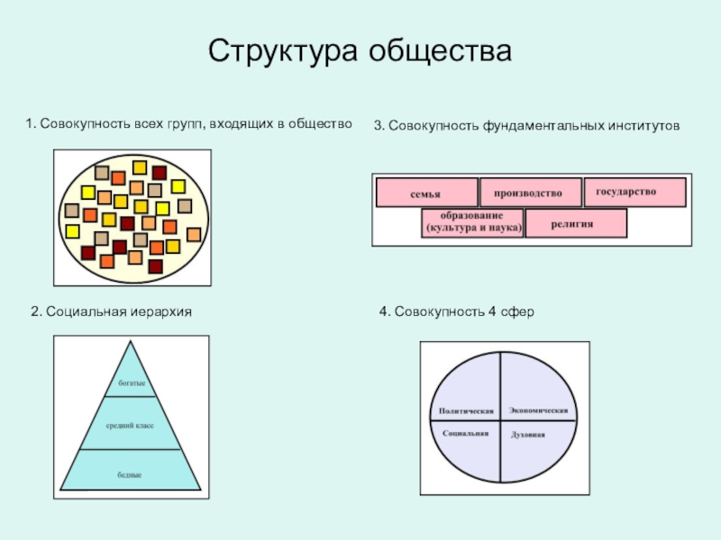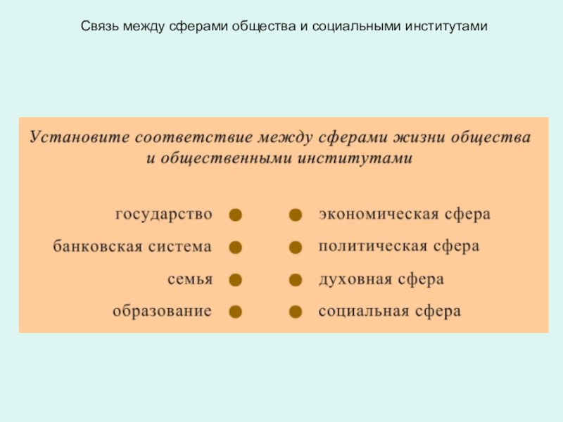 Экономическая сфера – включает отношения собственности, обмена, распределения, производственные отношения, институты рыночной экономики, финансовые институты и т. п. Она во многом является определяющей по отношению к другим сферам.