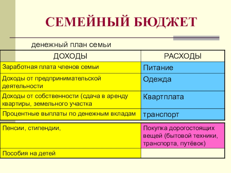 СЕМЕЙНЫЙ БЮДЖЕТденежный план семьи