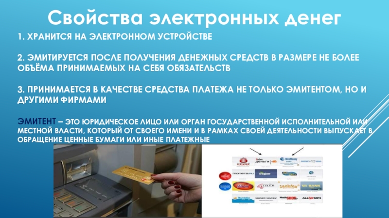 Свойства электронных денег