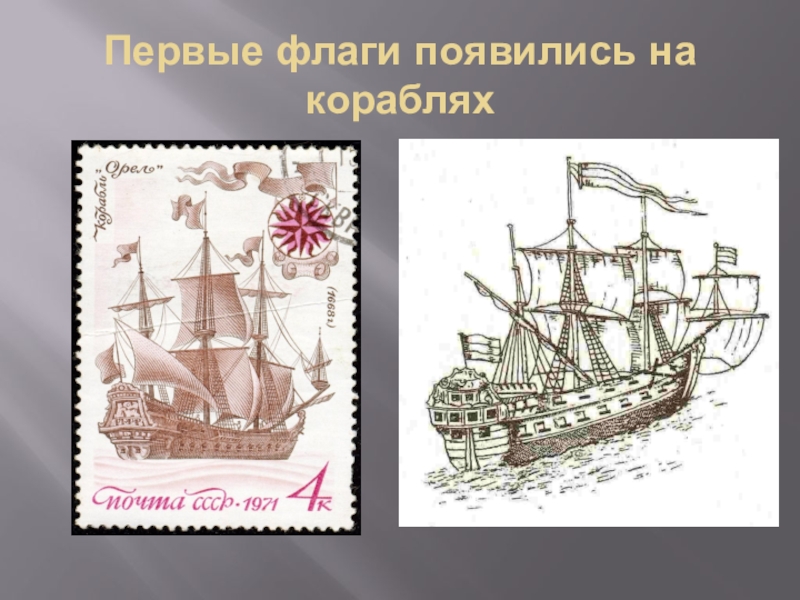Слайд 9Флаг перешитый с крестового для корабля при Петре Великом