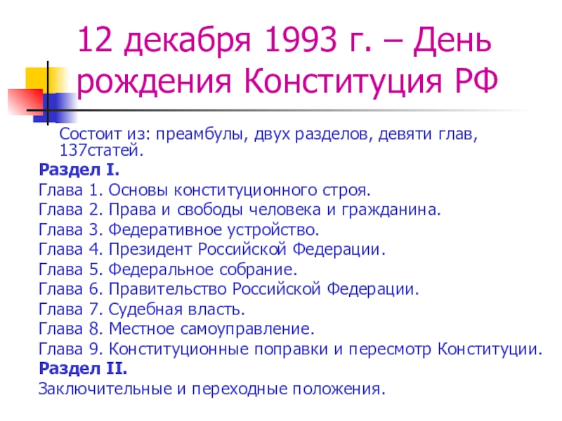 Слайд 612 декабря 1993 г. – День рождения Конституция РФ