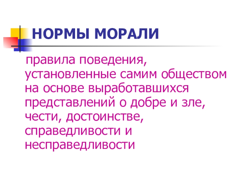представлений о добре и зле, чести, достоинстве, справедливости и несправедливости