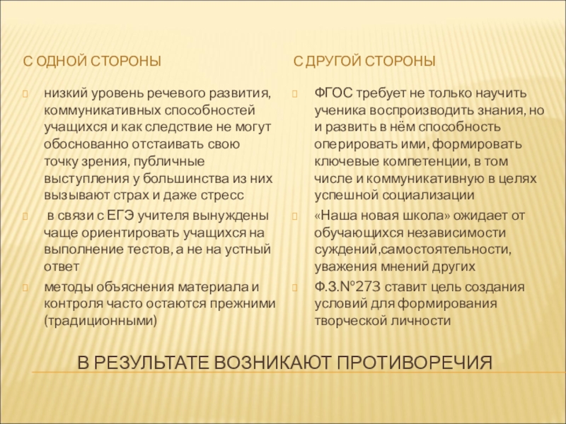 ФГОС требует не только научить ученика воспроизводить знания, но и развить в нём способность оперировать ими, формировать ключевые компетенции, в том числе и коммуникативную в целях успешной социализации