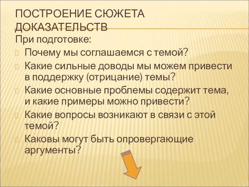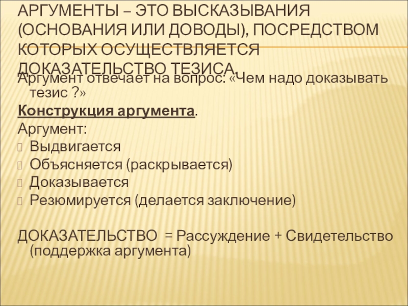 Аргумент отвечает на вопрос: «Чем надо доказывать тезис ?»