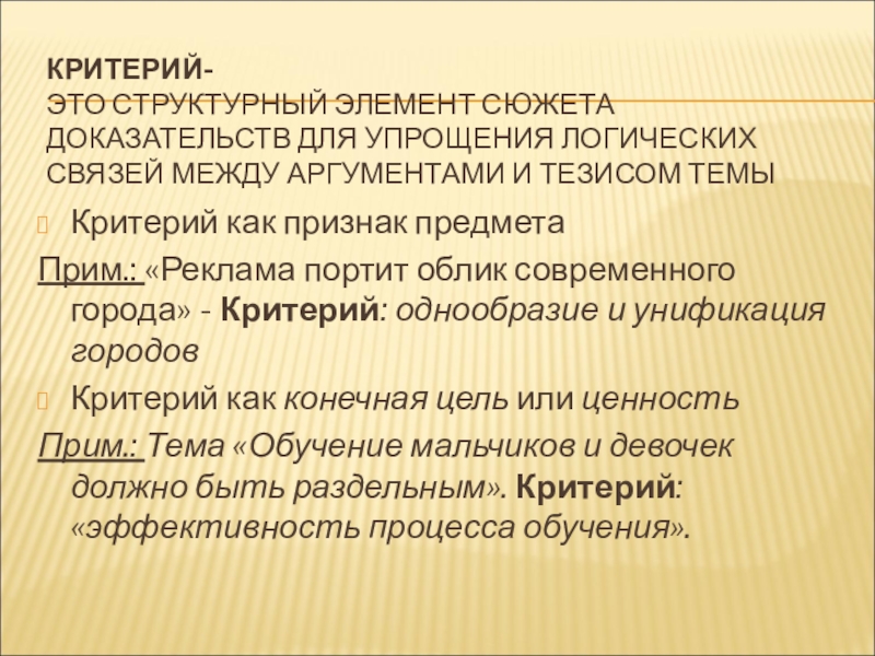 Прим.: Тема «Обучение мальчиков и девочек должно быть раздельным». Критерий: «эффективность процесса обучения».