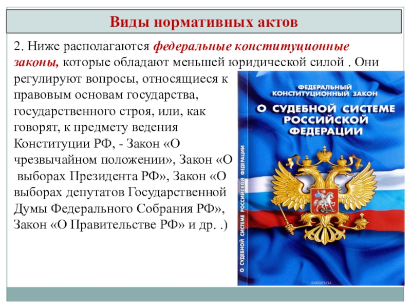Нормативные акты общеобязательны, гарантированны со стороны государства, принудительные санкции в отношении нарушителей правовых норм, закреплённых в нормативном акте неизбежны