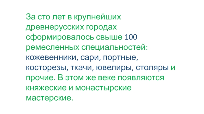 Слайд 10За сто лет в крупнейших древнерусских городах сформировалось свыше 100 ремесленных