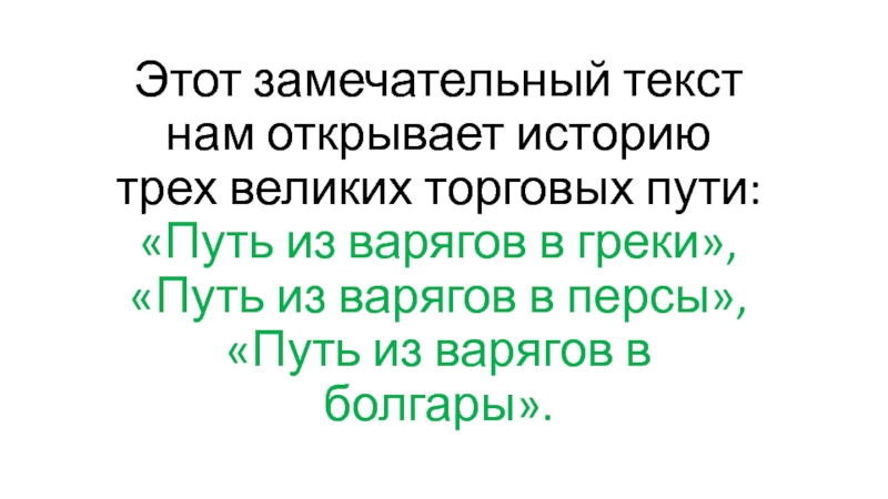 Слайд 4Этот замечательный текст нам открывает историю трех великих торговых пути: