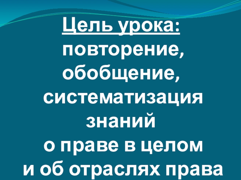 Цель урока: повторение, обобщение, систематизация знаний о праве в целом и об отраслях права в частности