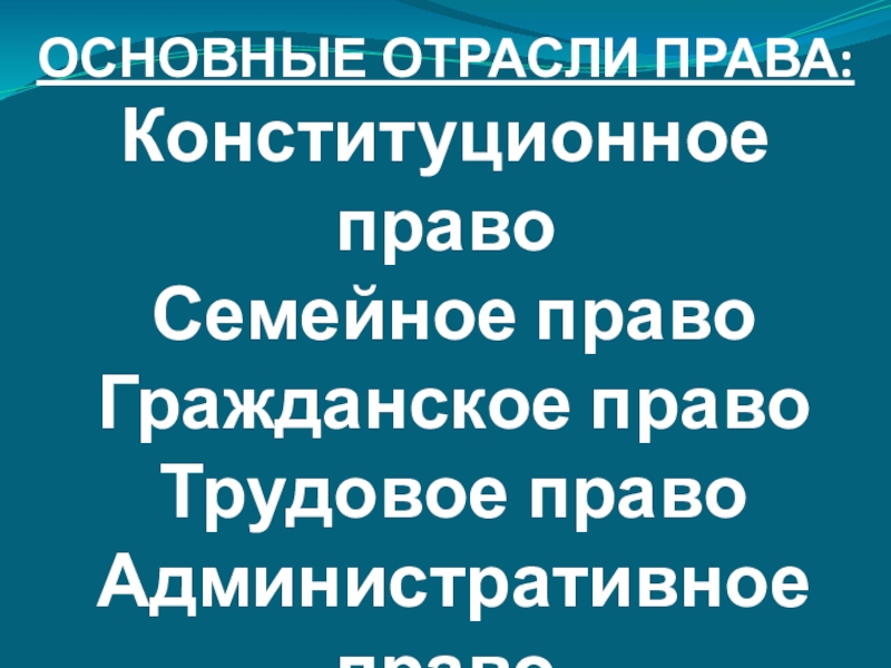 ОСНОВНЫЕ ОТРАСЛИ ПРАВА:Конституционное право Семейное право Гражданское право Трудовое право Административное правоУголовное право