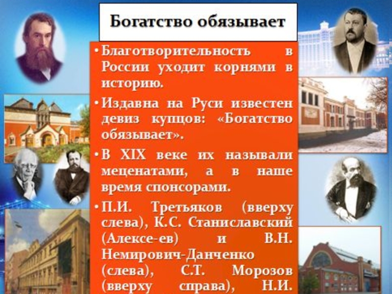 5.Меценаты — так называют богатых людей, отдающих часть денег на развитие