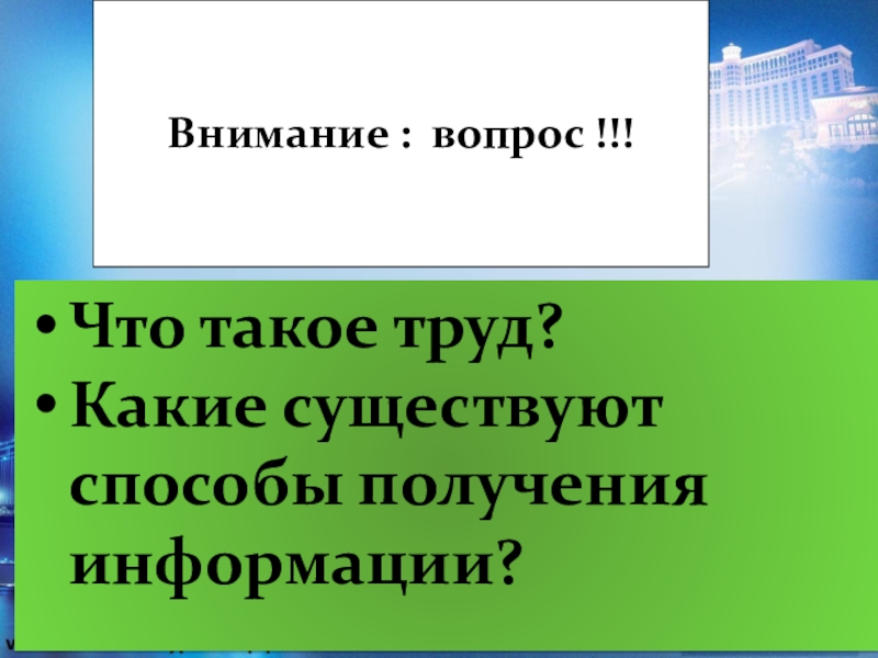 Слайд 14Итак, труд – это такая деятельность человека, которая требует знаний и