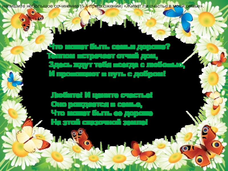 напишите небольшое сочинение (5-6 предложений) «Живет ли счастье в моей семье».