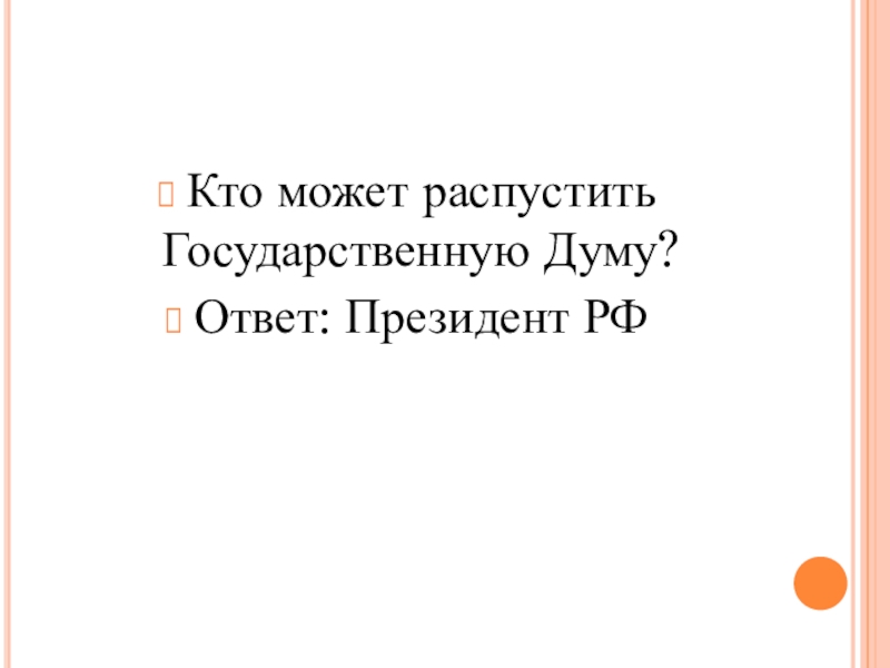 Кто может распустить Государственную Думу? Ответ: Президент РФ