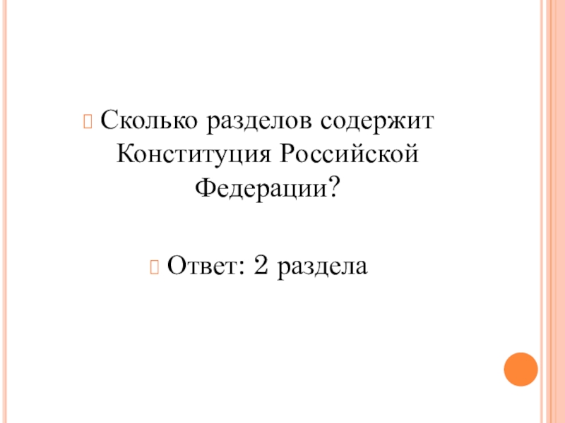 Сколько разделов содержит Конституция Российской Федерации? Ответ: 2 раздела