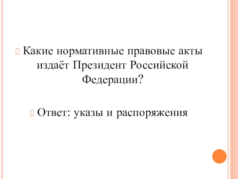 Слайд 14Какие нормативные правовые акты издаёт Президент Российской Федерации?