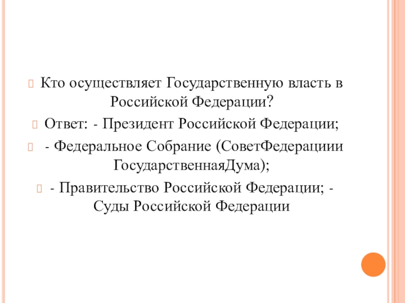 Слайд 3Кто осуществляет Государственную власть в Российской Федерации?