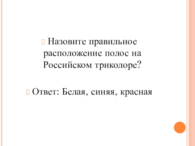 Слайд 19Назовите правильное расположение полос на Российском триколоре?