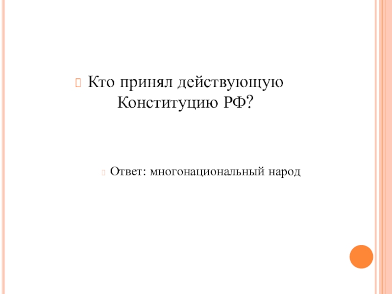 Кто принял действующую Конституцию РФ? Ответ: многонациональный народ