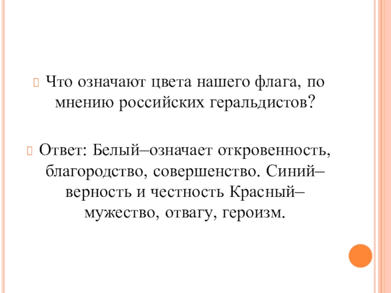 Слайд 20Что означают цвета нашего флага, по мнению российских геральдистов?